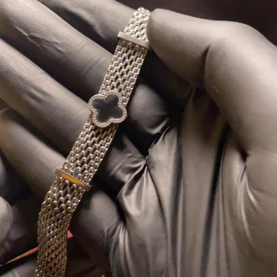 CLOVER MESH CHAIN BRACELET SILVER