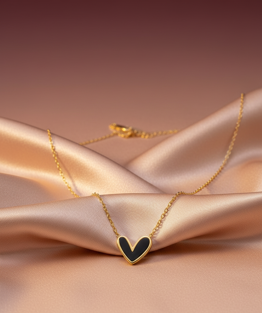 Embrace timeless elegance with our stunning Onyx Heart Pendant Necklace.