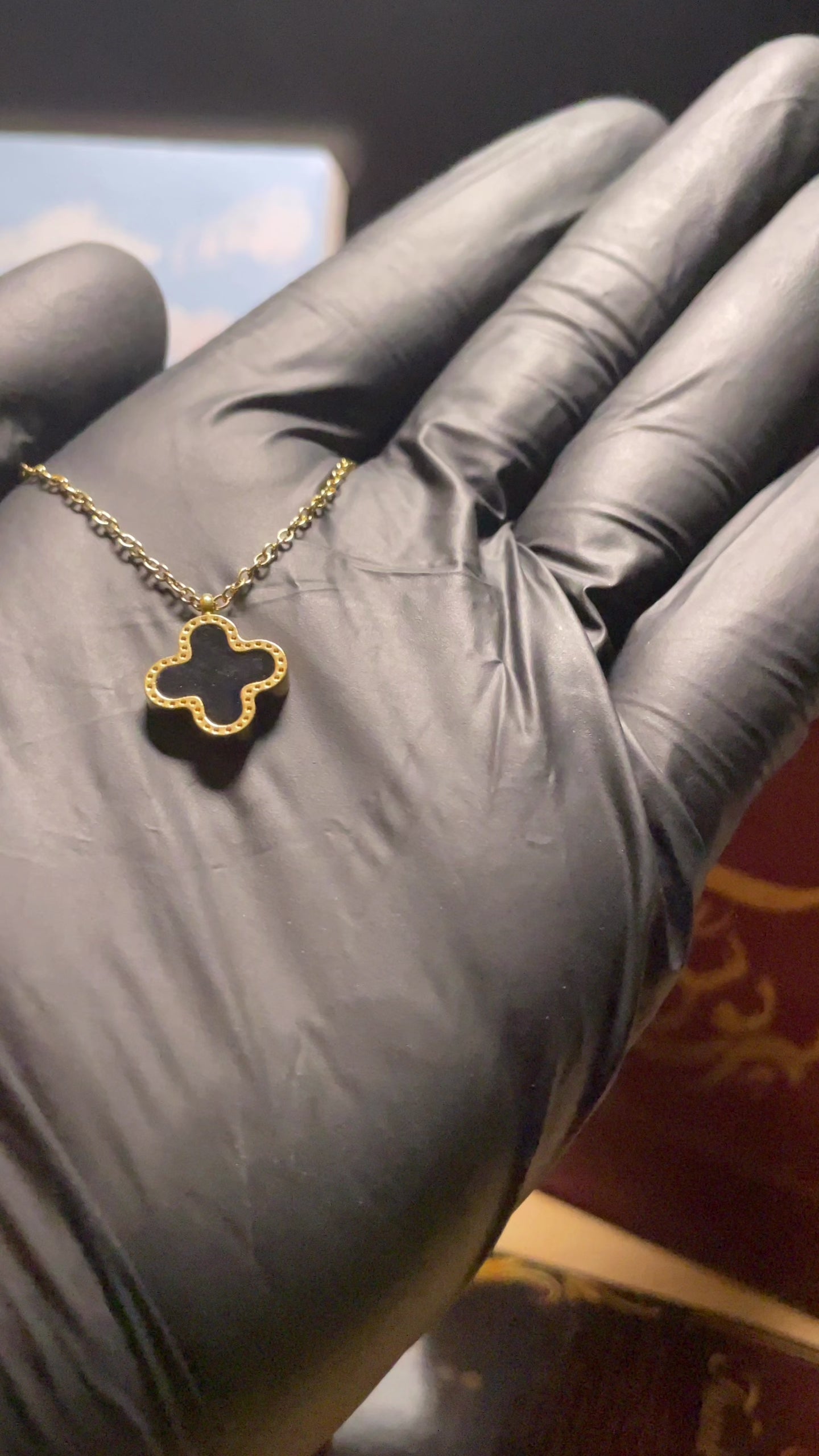 LUCKY CLOVER CHARM PENDANT DOUBLE SIDED( BLACK & WHITE)