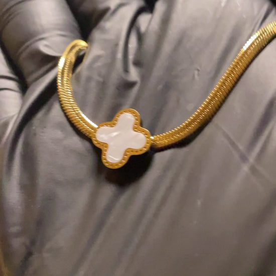 The centerpiece is a delicate four-leaf clover charm with a luminous, mother-of-pearl-like finish, adding a touch of sophisticated charm. Inspired by the timeless design of high-end jewelry, this necklace offers the perfect blend of luxury aesthetic and everyday durability.