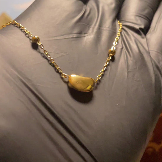 Elevate your style with the subtle shimmer of our Dainty Gold-Tone Beaded Choker. This piece captures a timeless elegance, featuring a fine chain that is beautifully interspersed with tiny, colorful accent beads for a pop of sophistication. The focal point is a central, luminous opalescent or mother of pearl style stone, perfectly situated to catch the light.