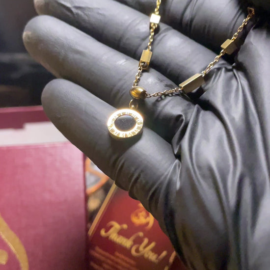 Chic Design: The delicate chain features evenly spaced beads and a striking circular charm with a bold black center, giving it a luxurious, high-end appeal.